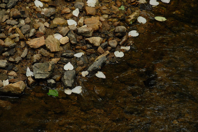 I recently decided to help The Dog battle the heat by putting a mixture of ice and water from a cooler into his bowl. He lopped to the bowl to sniff the new content, and then started to methodically lap it up. Not content with a cold drink, he picked up a large chunk of ice, which he then alternately carried around, and then settled to lick, leaving wet spots to mark his path.