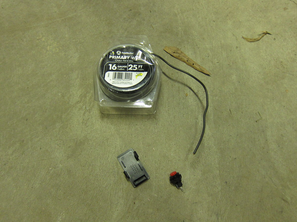 I attached a tap to the horn wire on the big block connector (left) and then choose an handy black ground wire and tapped the other lead. Pushing the button closes the circuit, allowing current to flow through the horns.